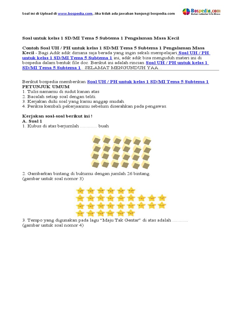 Tema 5 Subtema 1 "Pengalaman Masa Kecilku" merupakan fondasi penting dalam pembelajaran siswa kelas 2. Melalui berbagai contoh soal yang telah dibahas, diharapkan guru dan orang tua memiliki gambaran yang lebih jelas tentang bagaimana menguji pemahaman siswa secara komprehensif. Dengan pendekatan yang tepat dan soal yang relevan, pembelajaran tentang pengalaman masa kecil dapat menjadi momen yang berharga untuk pertumbuhan kognitif, emosional, dan sosial anak. Ingatlah bahwa setiap anak unik, dan proses belajar mereka pun berbeda. Fleksibilitas dan apresiasi terhadap usaha mereka adalah kunci utama keberhasilan.